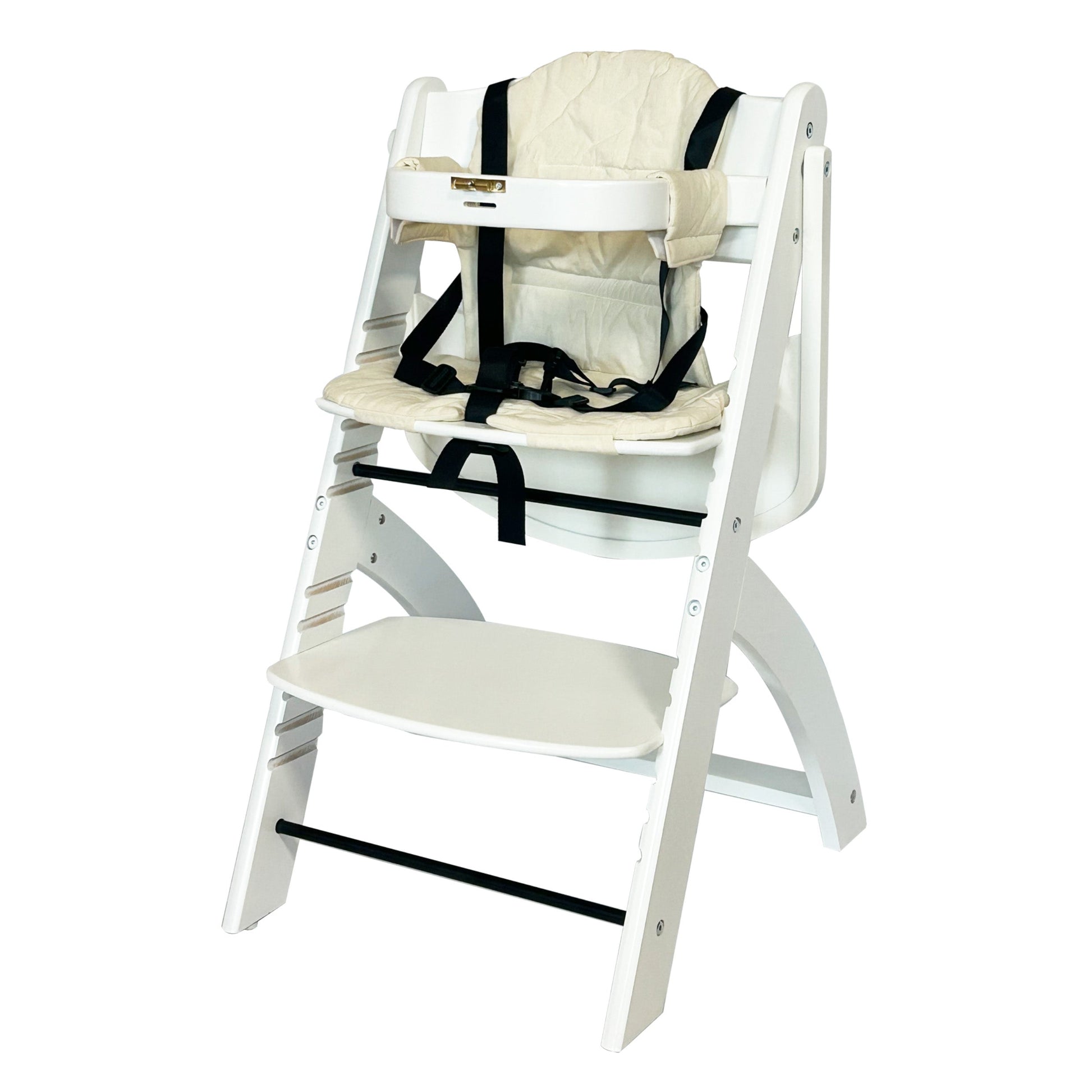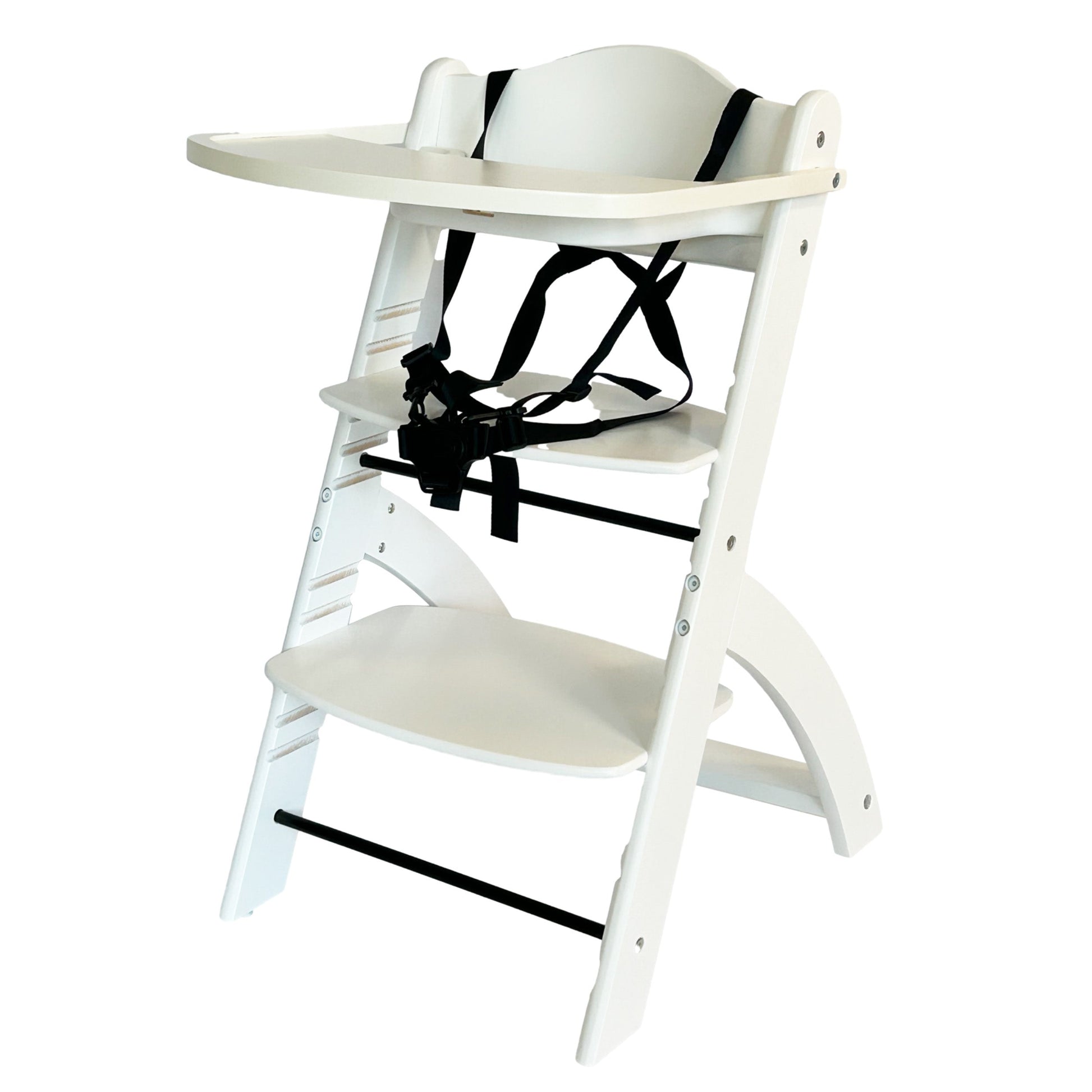 EMBLA Premium Wooden Adjustable High Chair with Tray and Safety Harness